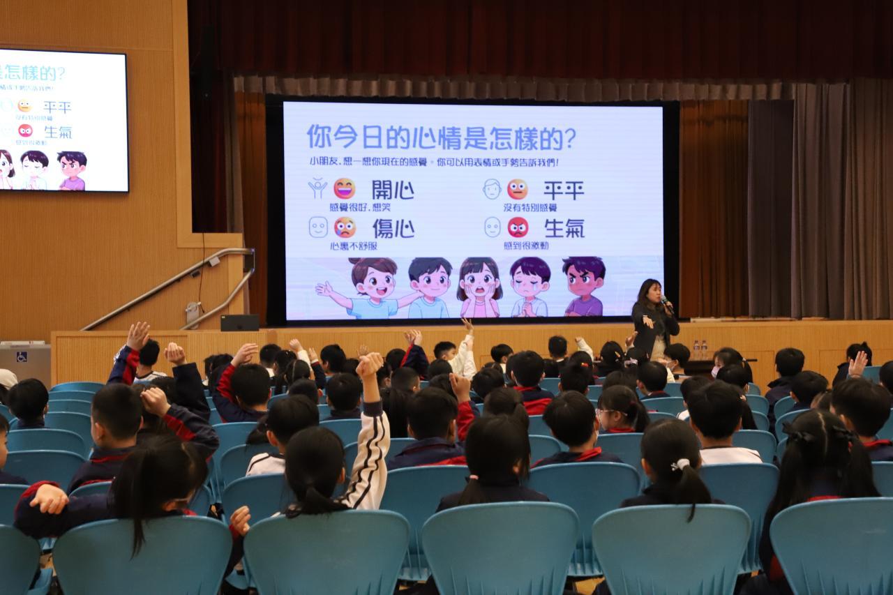 為提升初小學生對情緒的認識,學校駐校社工與小一及小二學生分享處理情緒的小技巧,讓學生學習以正面態度面對生活中不同的情緒。