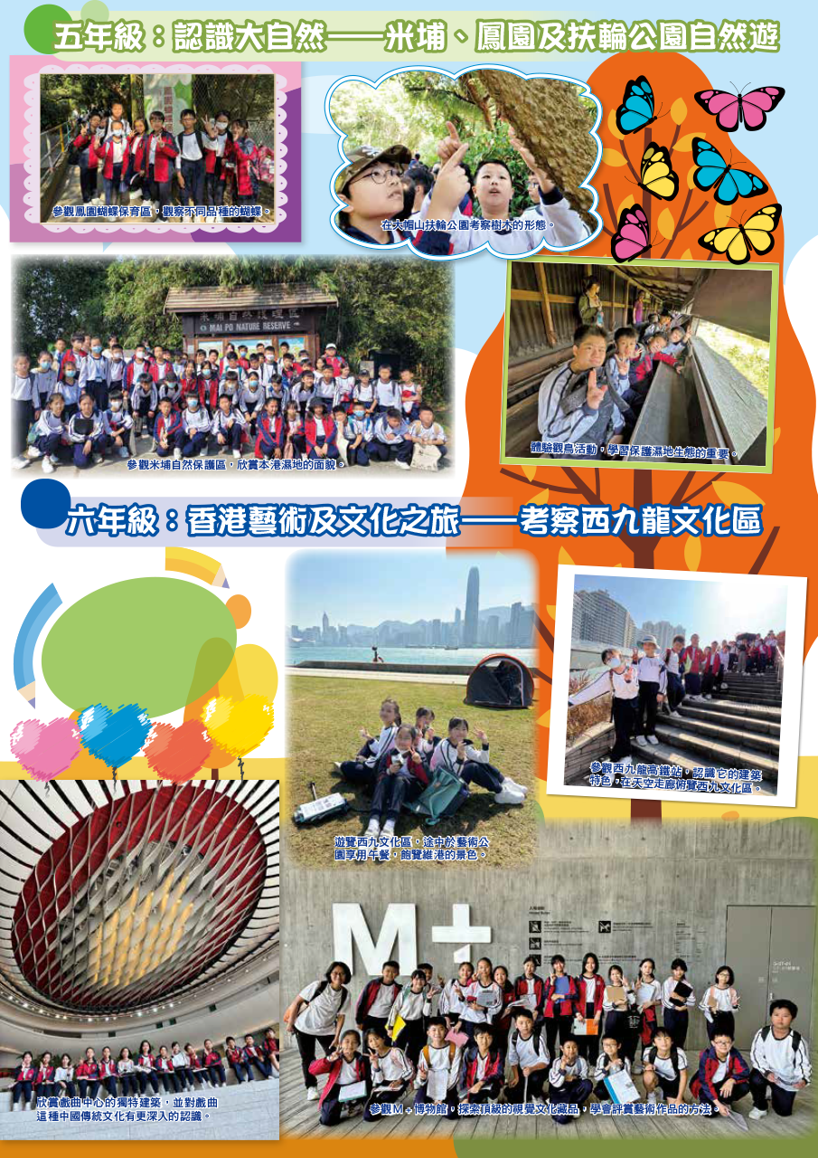 學校舉行全方位學習日,常識、中文、英文、數學及視藝科老師利用校外的環境和資源, 配合學科課程及學生能力安排跨學科的學習任務,並加入價值觀教育的元素,精心設計全方位學習手冊,讓同學們走出課 室,展開愉快的學習之旅。不同年級的同學分別到公園、社區機構、交通設施、廟宇、博物館、劇院、農場、郊野公園、 自然保護區等進行實地參觀考察。同學細心觀察,用心思考和記錄所見所聞,活用所學知識。我非常高興看見同學們開心 地投入參與全方位學習日活動,他們應用跨學科知識進行學習,擴闊視野,從中培養共通能力及良好的價值觀和態度。相 信下學期另一次的全方位學習日,也會為孩子帶來更多的學習體驗。