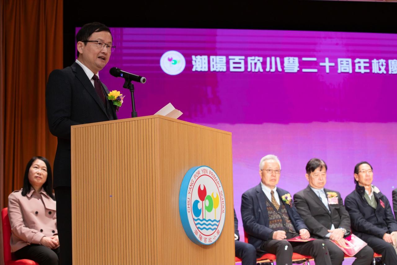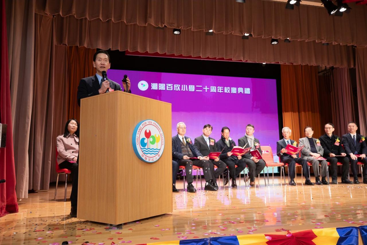 潮陽百欣小學於2026年1月9日上午在學校禮堂隆重舉行「二十周年校慶典禮」。學校榮幸邀請西九文化區管理局董事局主席陳智思先生 大紫荊勳賢,GBS,JP,以及百欣慈善基金副行政總裁關據鈞先生擔任主禮嘉賓。校董會成員、教育界先進、各界嘉賓、家長教師會代表及全校師生齊聚一堂,共同見證學校的重要里程碑。