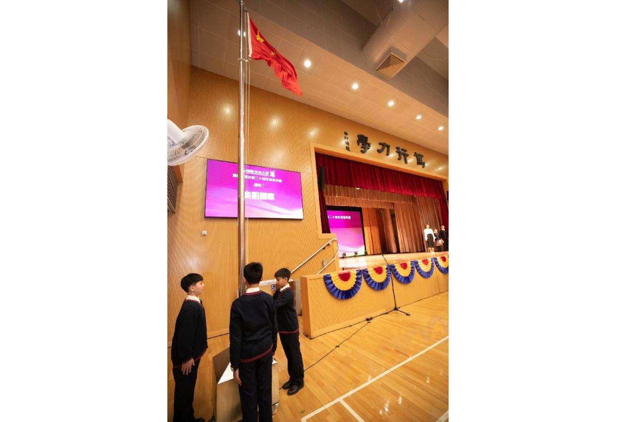 學生組成的升旗隊進行莊嚴的升旗禮。