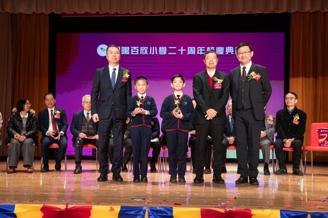 典禮上播放《百欣展光彩》短片,向來賓介紹學校近年來的教育發展與辦學成就。主禮嘉賓聯同校董會成員主持校慶亮燈儀式和新設施啟用儀式,象徵百欣邁向更光明的未來。隨後頒發二十周年校慶各項比賽冠軍獎項,表彰學生在學術及多元智能上的卓越表現。