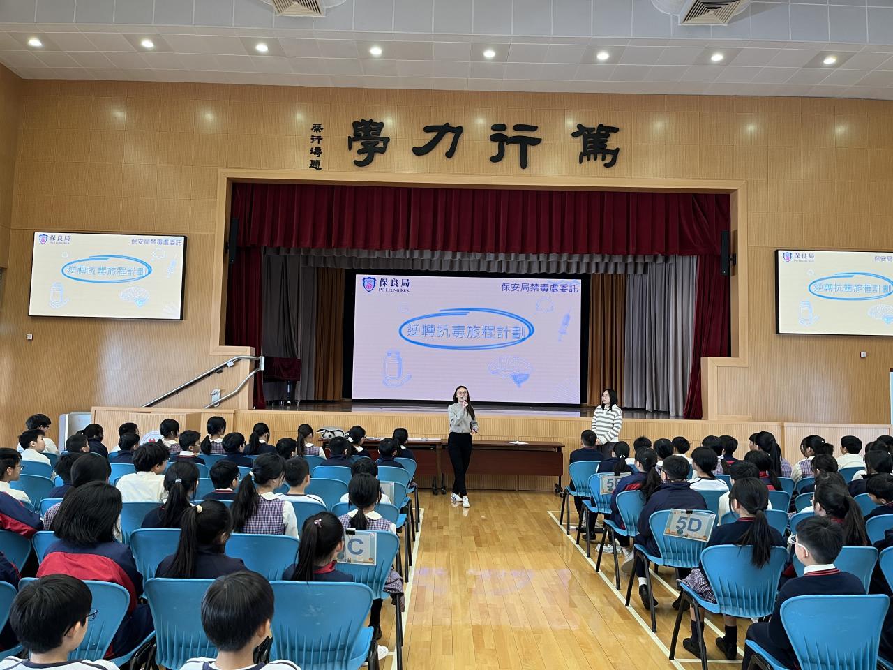 為了提高學生對毒品的知識和警戒心,校方邀請保良局青少年事務部到校,為五、六年級學生進行互動講座。社工們透過互動式講座、體驗式遊戲活動及短片,讓學生提高對毒品的認知,學習如何對毒品Say No,鼓勵學生追求正向健康生活的態度,建立正確價值觀。