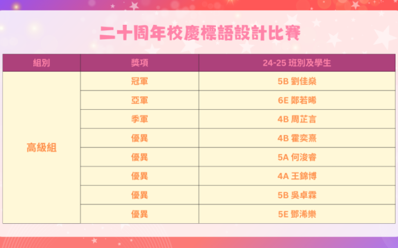 本校原為「香港潮陽小學下午校」,創校於一九九三年,於二零零五年九月遷往新校舍,並命名為「潮陽百欣小學」。轉眼間,潮陽百欣小學已踏入二十載,衷心感謝家長及各界人士對潮陽百欣小學的愛護和支持,令學校茁壯成長。踏入二零二五年,本校以「感恩.卓越創新」為二十周年校慶主題,一同回顧學校歷史,展示學校成就及學生才華,並展望未來。學校安排多元化的校慶活動,學校的教職員、學生、家長及畢業生一齊祝賀校慶,分享校慶的喜悅。