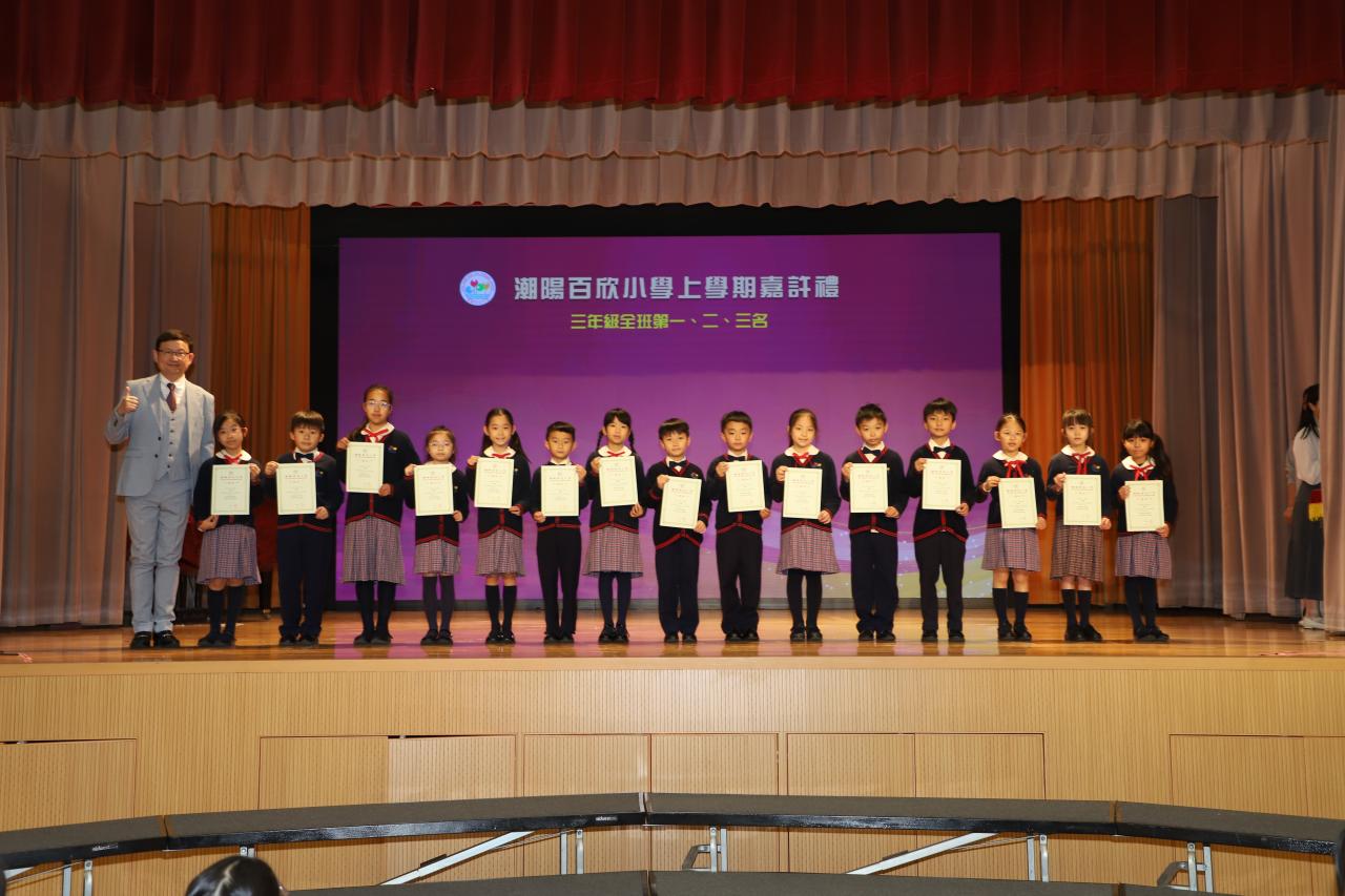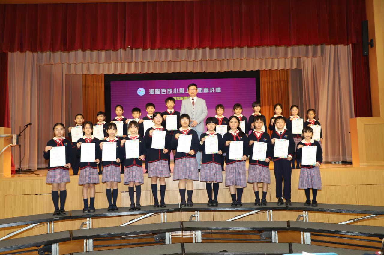 上學期嘉許禮作為一個階段性的總結,旨在表揚於校內及校外比賽中獲得優異成績的同學,以及在第一學段考試中考獲首三名的學生。是次活動特別安排香港學校朗誦節得獎同學作精彩表演,並邀請於「百欣大明星」中表現卓越的同學再次登台演出,以示嘉許,讓全校師生及家長一同見證同學的努力成果與成長。