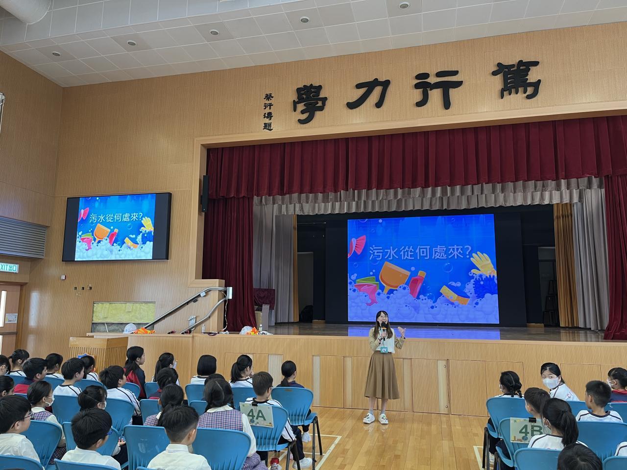 學校參加了由環境及生態局主辦的社區教育活動──「持續發展學校外展計劃」,邀請渠務署的代表到訪學校,以簡報、影片及答問環節的形式,為四至六年級同學介紹香港的污水處理和和防洪方面的工作,讓同學了解政府應對氣候變化的策略,以及市民保護環境和珍惜水資源的重要性,從而鼓勵同學身體力行推動可持續發展。