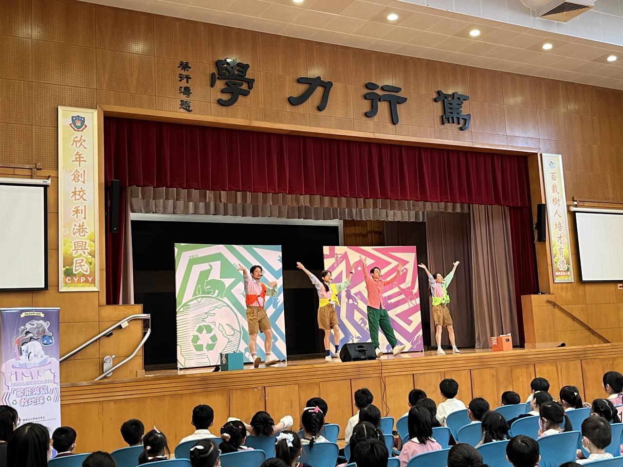 學校邀請「夢飛行合家歡劇團」到校,透過話劇表演,讓小一及小二同學明白「減碳」能實踐環保,期望學生能從小養成好習慣,做個愛護地球的好公民。