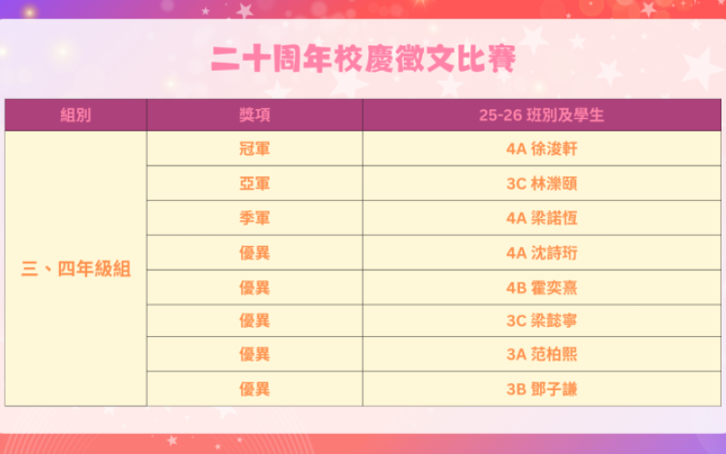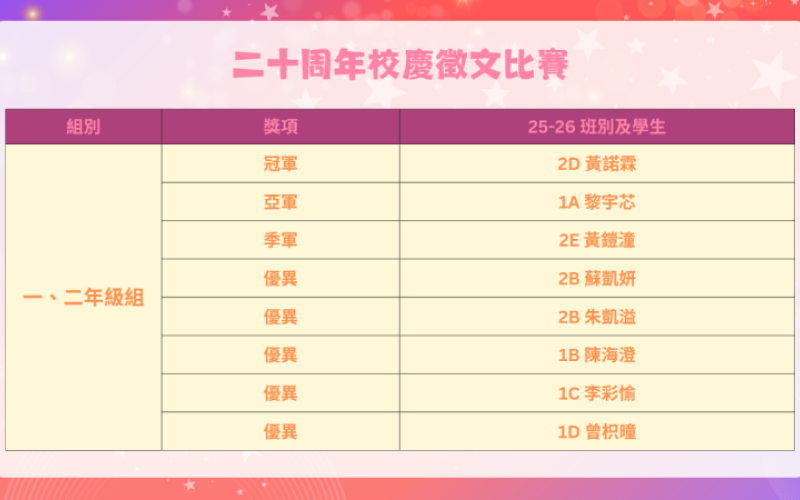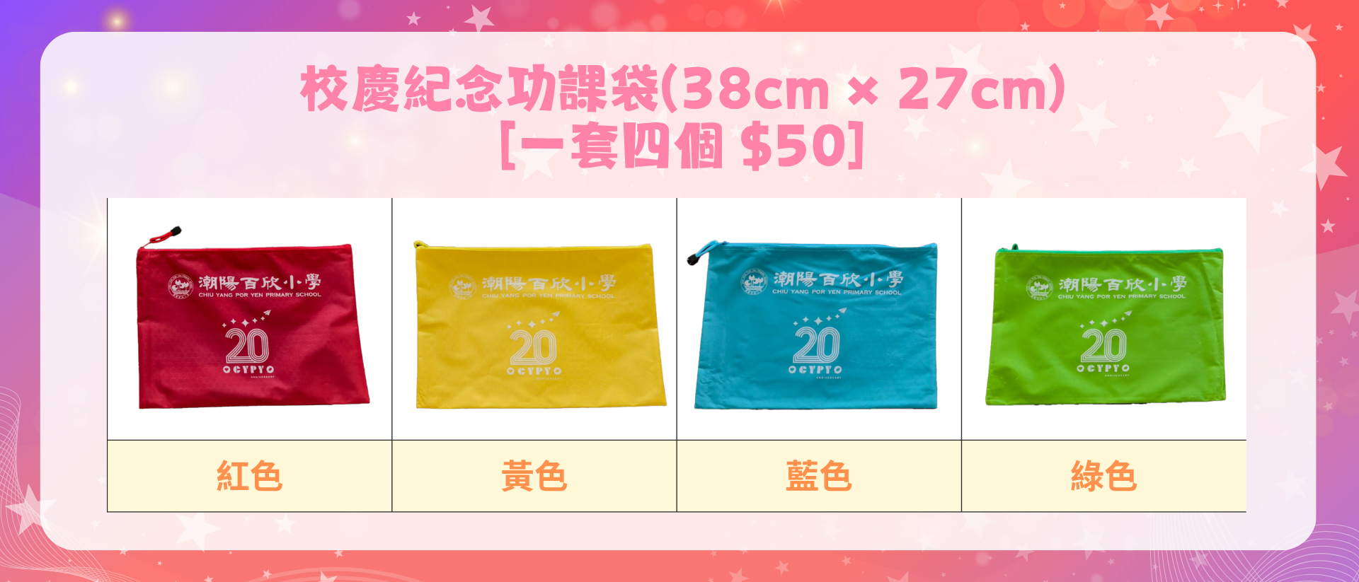為慶祝潮陽百欣小學創校20周年,本校特別推出系列紀念品,以紀念這重要的里程碑。是次售賣旨在與家長及學生共同分享校慶的喜悅,同時籌集資金支持學校的持續發展。所有款項在扣除開支後,將全數用於學校設施改善、教學資源增購及學生活動資助等,為學生提供更優質的學習環境。由潮陽百欣小學家長教師會協助籌集。請參考家教會通告(25/26-PTA05)。如校友想訂購,請聯絡校務處(2445 1666)。